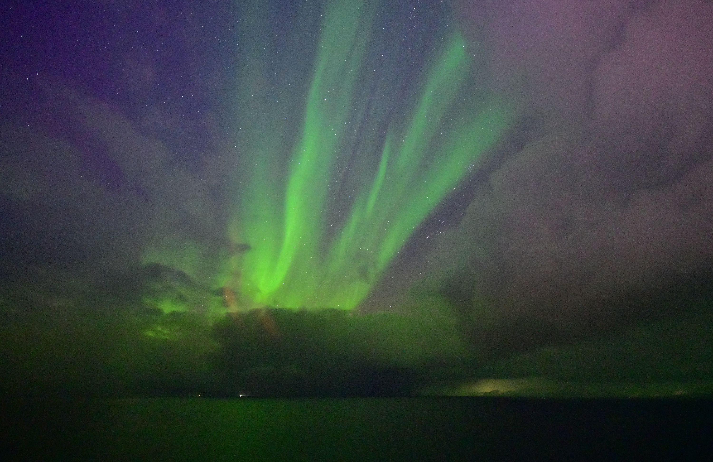 Aurora Borealis, ~68° north, leaving Narvik with CS Mein Schiff 3, Norway (November 26, 2025; 15:15 UTC)