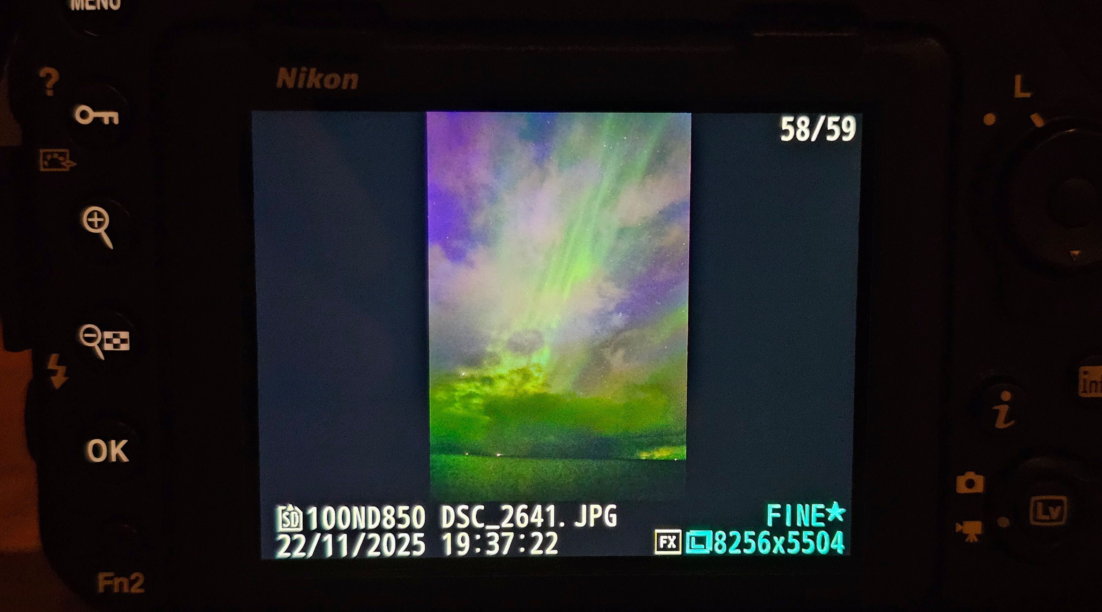 Aurora Borealis, ~70° north, CS Mein Schiff 3, Norway (November 22, 2025; 19:36 UTC); image # dsc2632